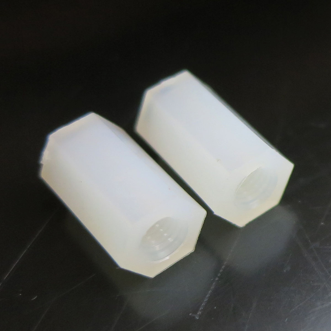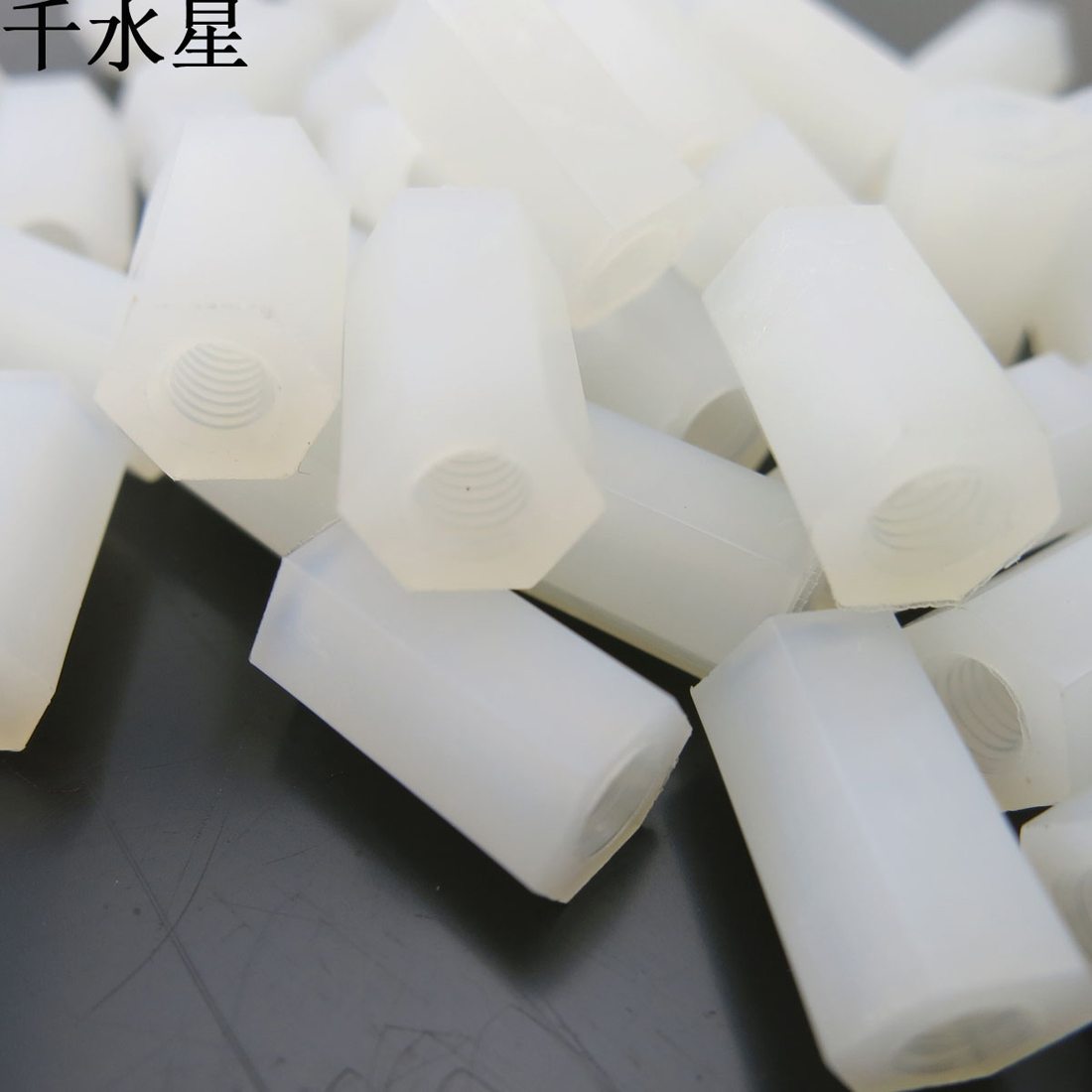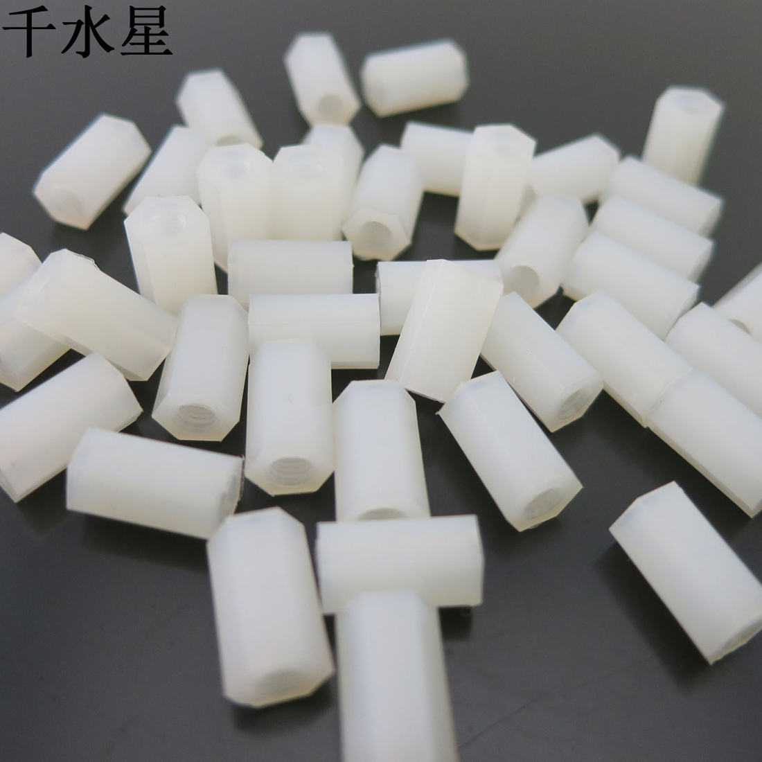 六角尼龙柱,防锈材质,可以替代六角铜柱作为模型隔离柱,尤其适用于易于生锈的场景,如船模。 【尺寸】:M3 【长度】:10/15/25/6/18/20/30mm 【材质】:尼龙 【特点】:硬度高,耐磨,耐高温热、 【重量】:10mm长度产品约0.2克 【装包】:一小包20个