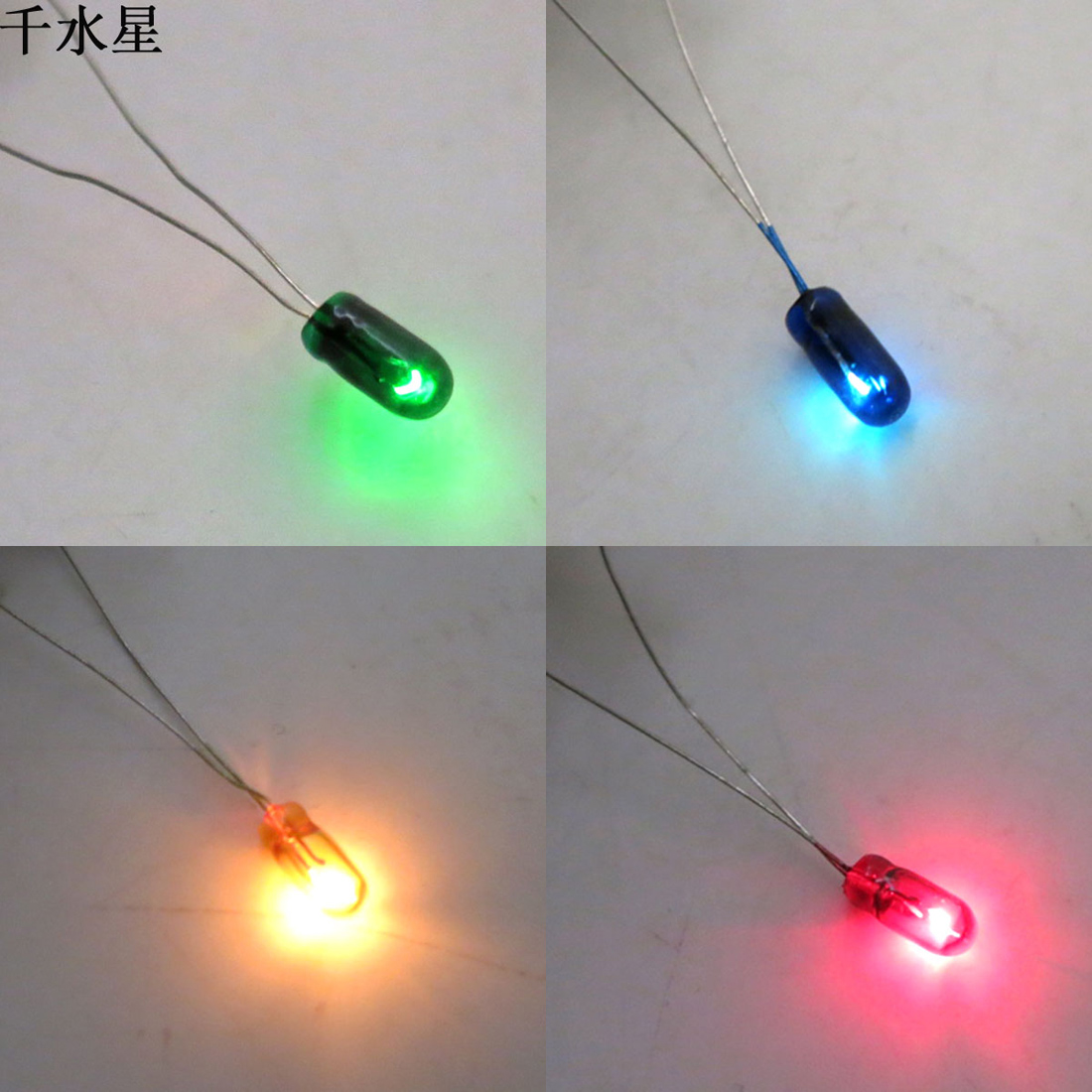 DIY沙盘模型制作彩色米泡灯,多种颜色可选。 【颜色】:红色,黄色,蓝色,绿色。 【尺寸】:高度7*直径3mm 【电压】:6.5v 【重量】:约0.1克 【清单】:一包10只 注意:接线时,灯脚不能相接触。注意长脚接正极,接反不亮。