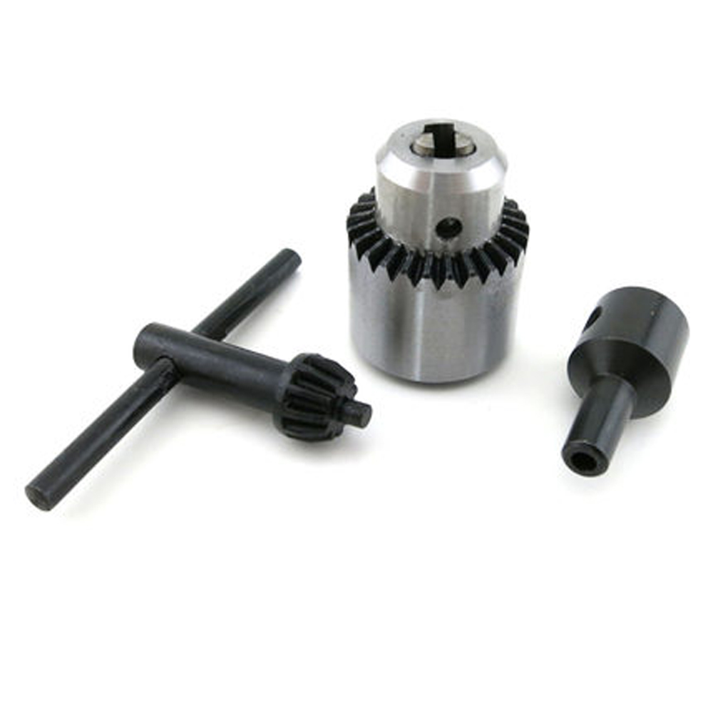 【发货清单(下图)】:0.3-6mm钻夹头,黑扳手,5mm连杆