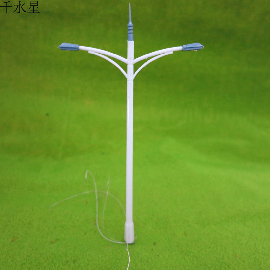 伸展型双头马路灯,每只路灯有2个灯泡,位于2侧,路灯顶部伸出尖头造型。 【比例】: 伸展型双头马路灯1/75H 高度150.0mm 伸展型双头马路灯1/100H 高度110.0mm 伸展型双头马路灯1/150H 高度70.0mm 伸展型双头马路灯1/200H 高度55.0mm 【电压】3V,本灯是led贴片灯,接电需分正负极,接反不亮
