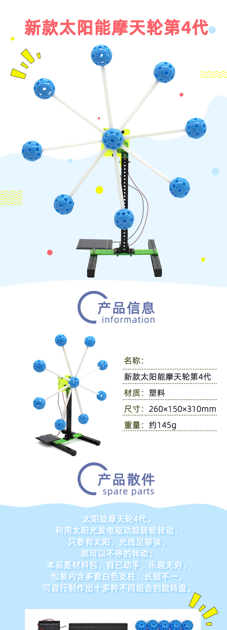 太阳能摩天轮第4代 拼装模型 科技小制作发明 DIY套装创意礼品