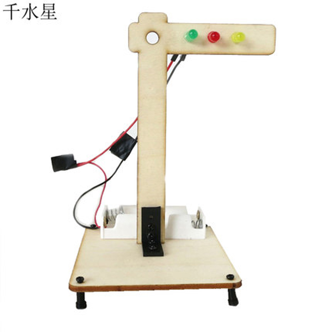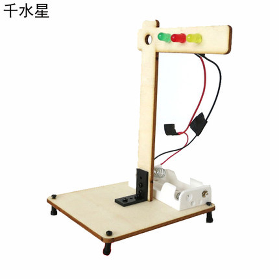 红绿灯拼装模型,本款小制作为材料包,需要动手自己组装,有说明书,安装简单方便,适合爱动手的DIY爱好者。教学中,可以方便的让小朋友认识红绿灯。需自配2节五号电池供电,小灯泡为二极管,有正负极之分,长引脚为正极,接电过程中如不亮,请尝试反接线路。 【材料】:木板 【尺寸】:7.5*9*13cm 【重量】:约22克(不含电池重量)
