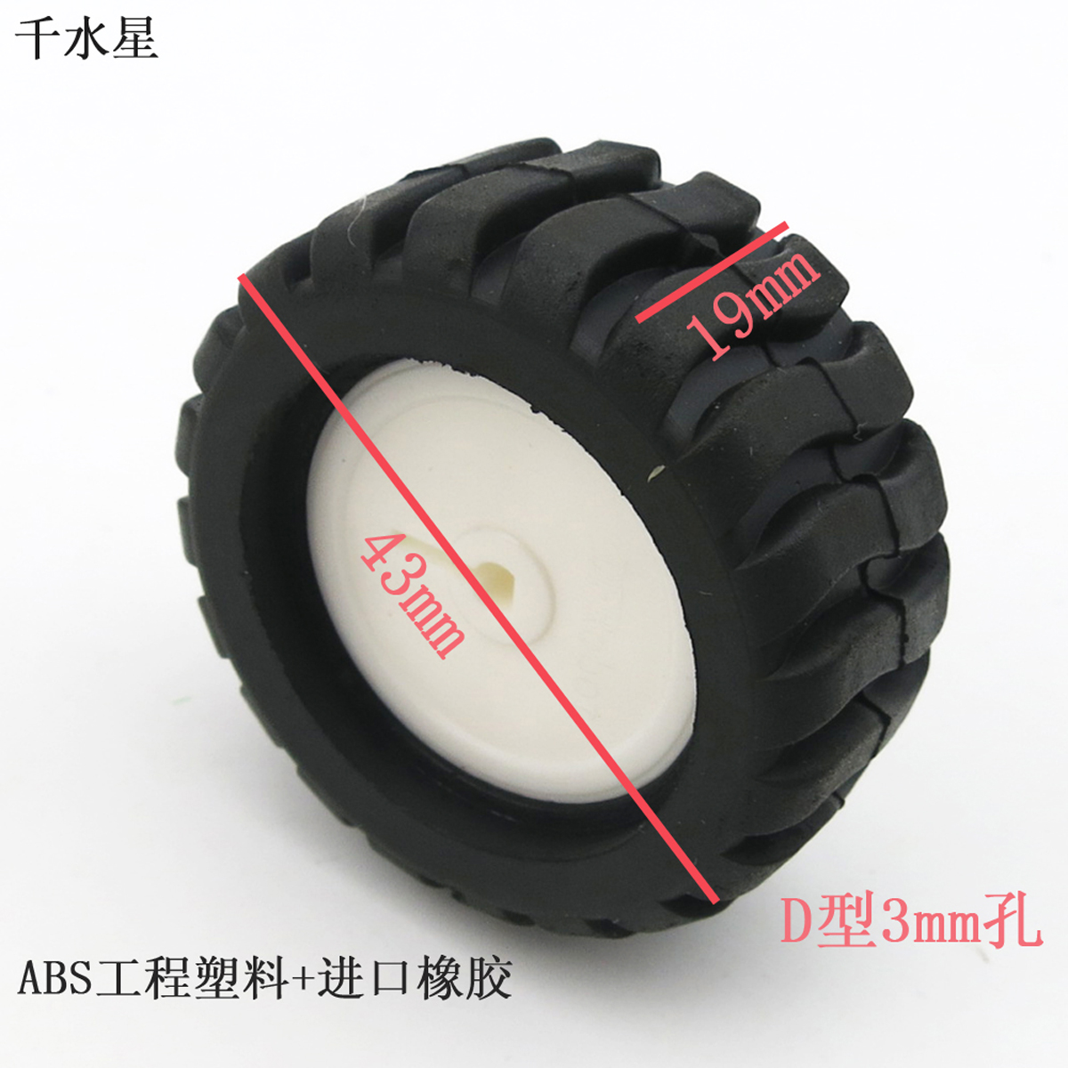 D型孔模型橡胶,适合3mm削边轴。具有较大的支撑力,适合机器人模型。 【产品直径】:43mm 【产品厚度】:19mm 【产品孔径】:D型 3mm孔 【产品材质】:ABS工程塑料+橡胶 【发货清单】:橡胶轮1只