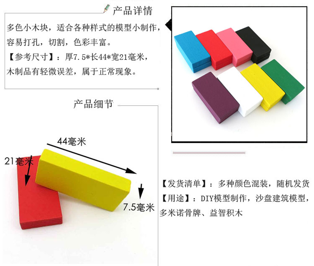 当前位置: 首页 > 模型材料 > 木板木条 > 彩色小木块 DIY建筑模型木片 多米诺骨牌 科普制作材料 益智积木