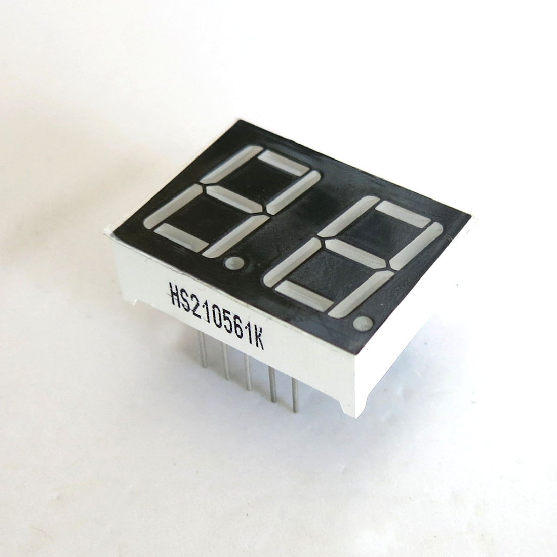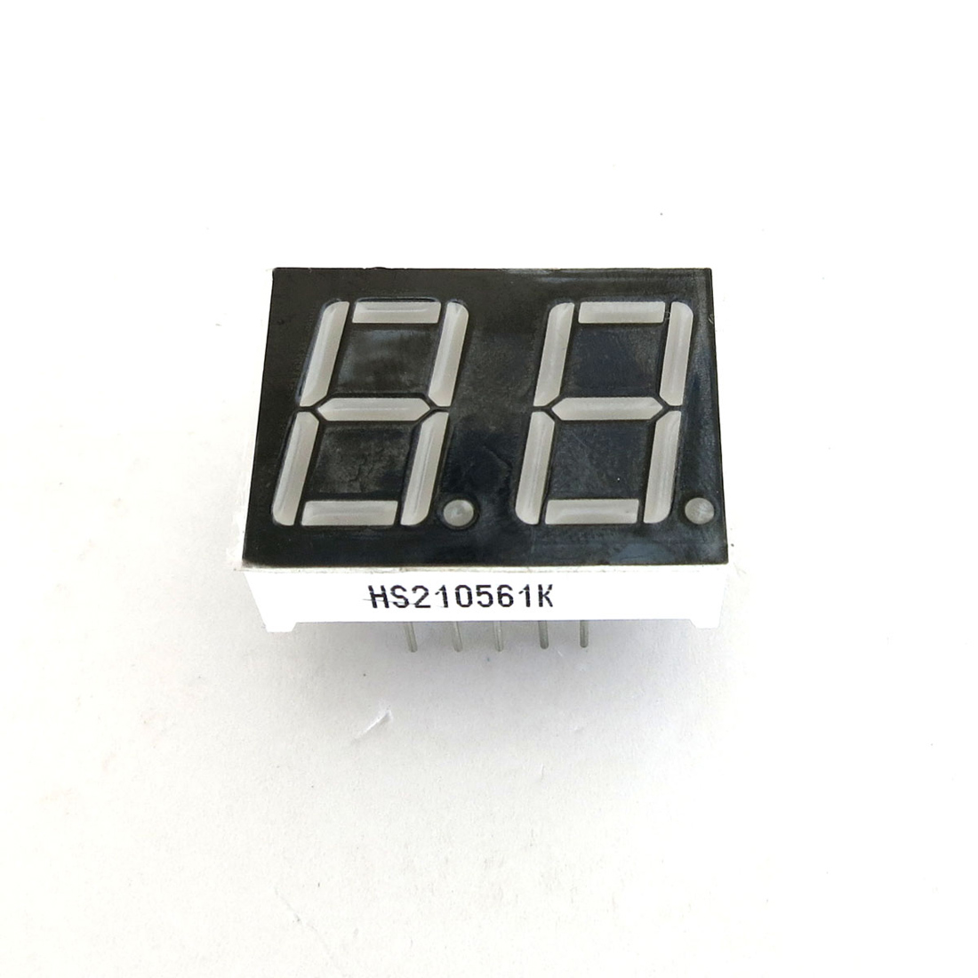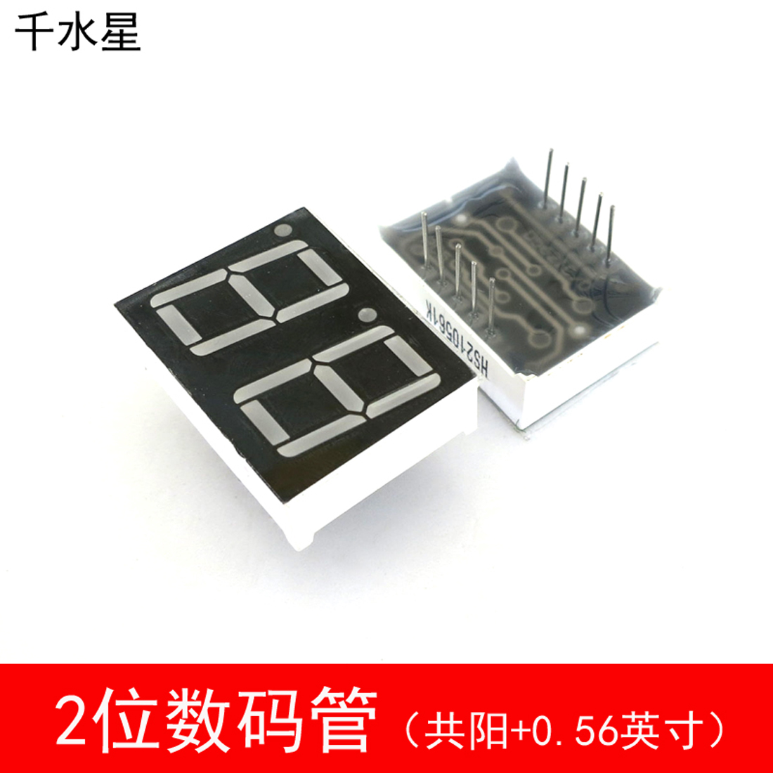 2位数码管,可以显示2位数字 产品脚数:10脚 每位尺寸:0.56英寸 外形尺寸:25*19mm 发货清单:5个装