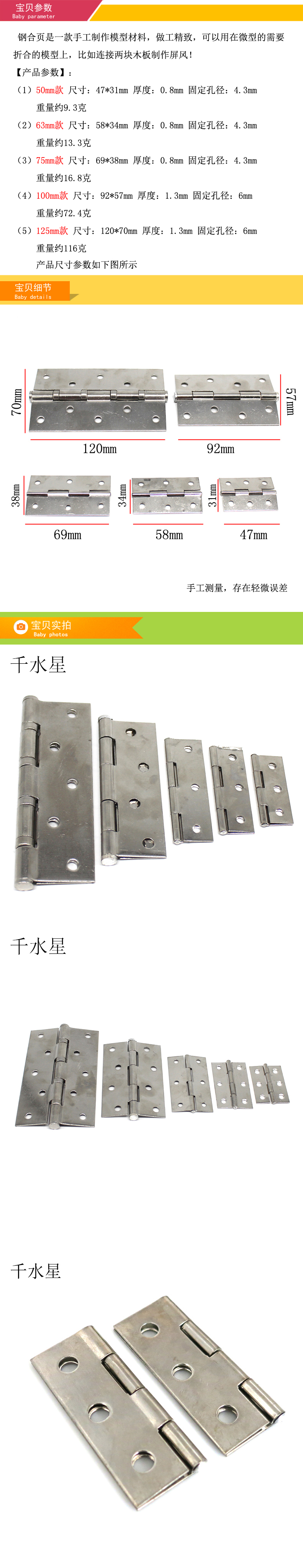 当前位置: 首页 > DIY配件 > 常用配件 > 不锈钢合页 DIY模型拼装折页 手工制作模型配件 房门五金合叶活页