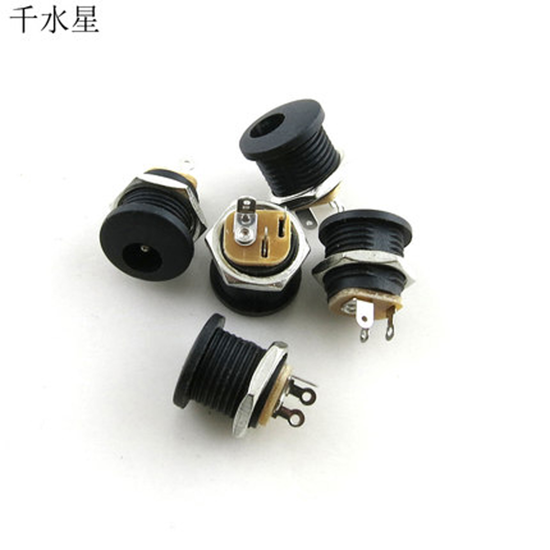 DC2.1电源插座(圆形), 【主体高度】:13.5mm(不含引脚,带引脚高度18mm) 【主体直径】:14mm 【接口适配】:DC2.1插头 【六角螺母尺寸】:1.3mm 【参考安装孔径】:约10.8-11mm(指如果安装到板子上,板子需要打孔的直径) 【安装厚度】:7.5mm(指如果安装到板子上,板子的厚度) 【重量】:2.5克/个