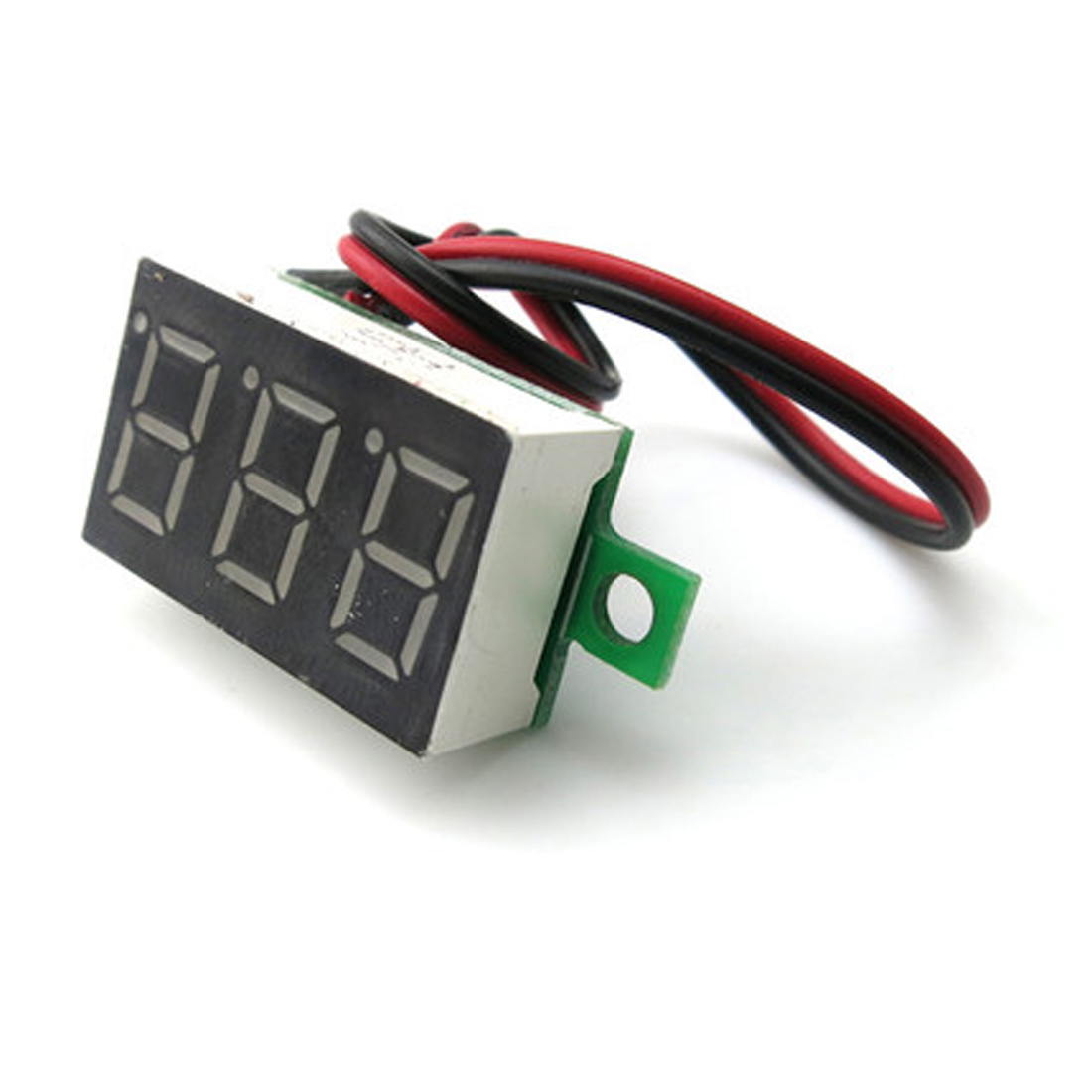 产品简介:用于显示电压的数显电压表头。【测量范围】:DC4.50-30.0V【供电范围】:无需另外电源供电,直接使用受测电压作为电源,范围同上【输入】:DC30.0V。注:输入电压高于30V有可能永久性损坏!【允许误差】:±1%;大于等于10V时误差是±0.3V;小于10V时误差±0.10V【输入阻抗】:> 100K欧【工作电流】:红色< 23mA【刷新速度】:约300mS一次【显示方式】:三位0.36”LED数码管【显示颜色】:红色【引线长度】:15cm【外形尺寸】:23 x 15 x 10 mm,长X宽X厚(不含安装耳);【含安装耳长度】:33mm【 安装孔孔距 】:28mm,孔径:2.8mm【 净 重 】:4.7g【 毛 重 】:5.3g【工作温度】:-10℃~65℃