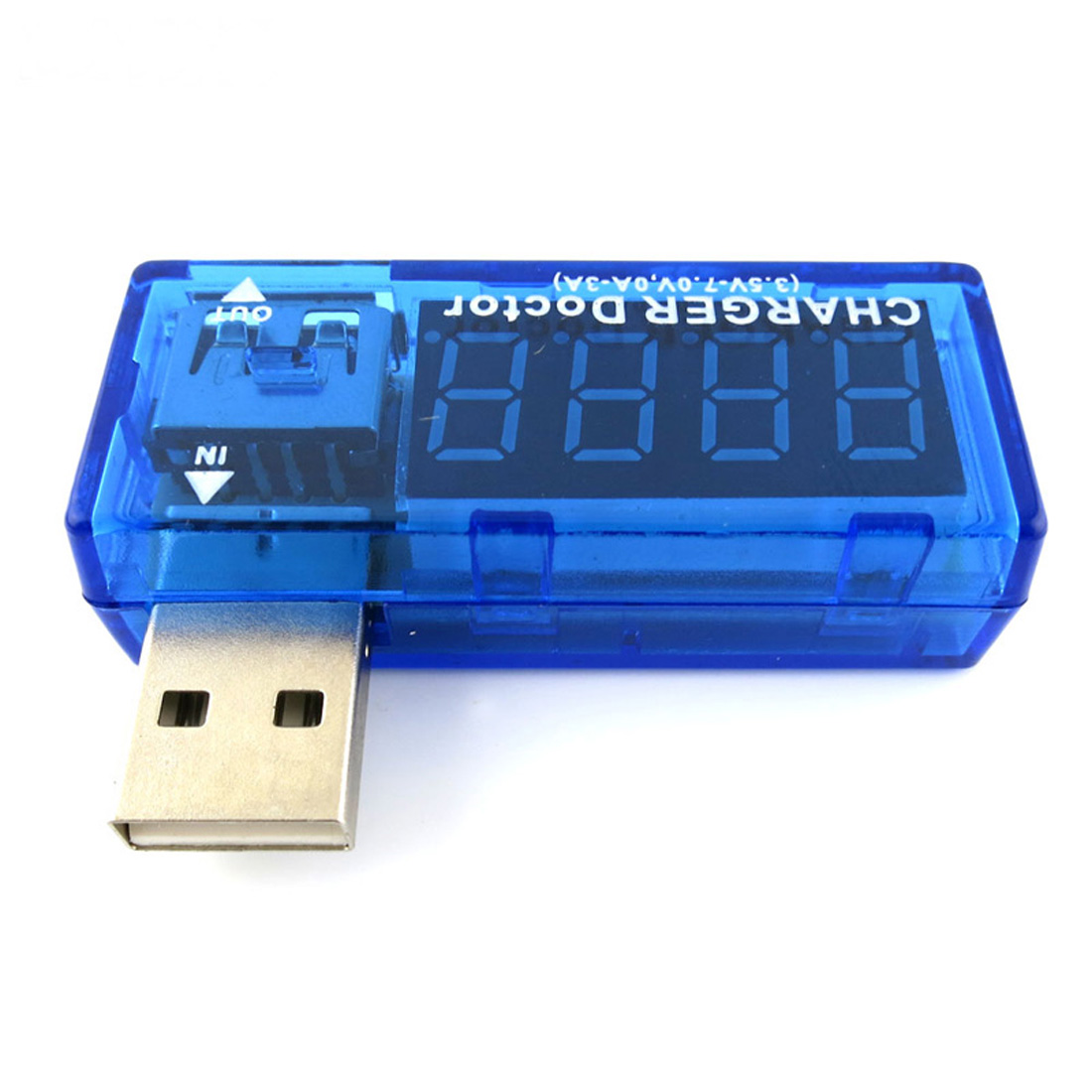 【测量精度】1%刷新速度大约200ms一次【显示方式】电流电压交替显示【电压测量范围】3.5V-7V【电流测量范围】0A-3A【工作电流】20mA【颜色】蓝色透明【存储温度】-10℃ 到 +65℃【电表压降】200mV【重量】约15.4g【尺寸】52*20*15