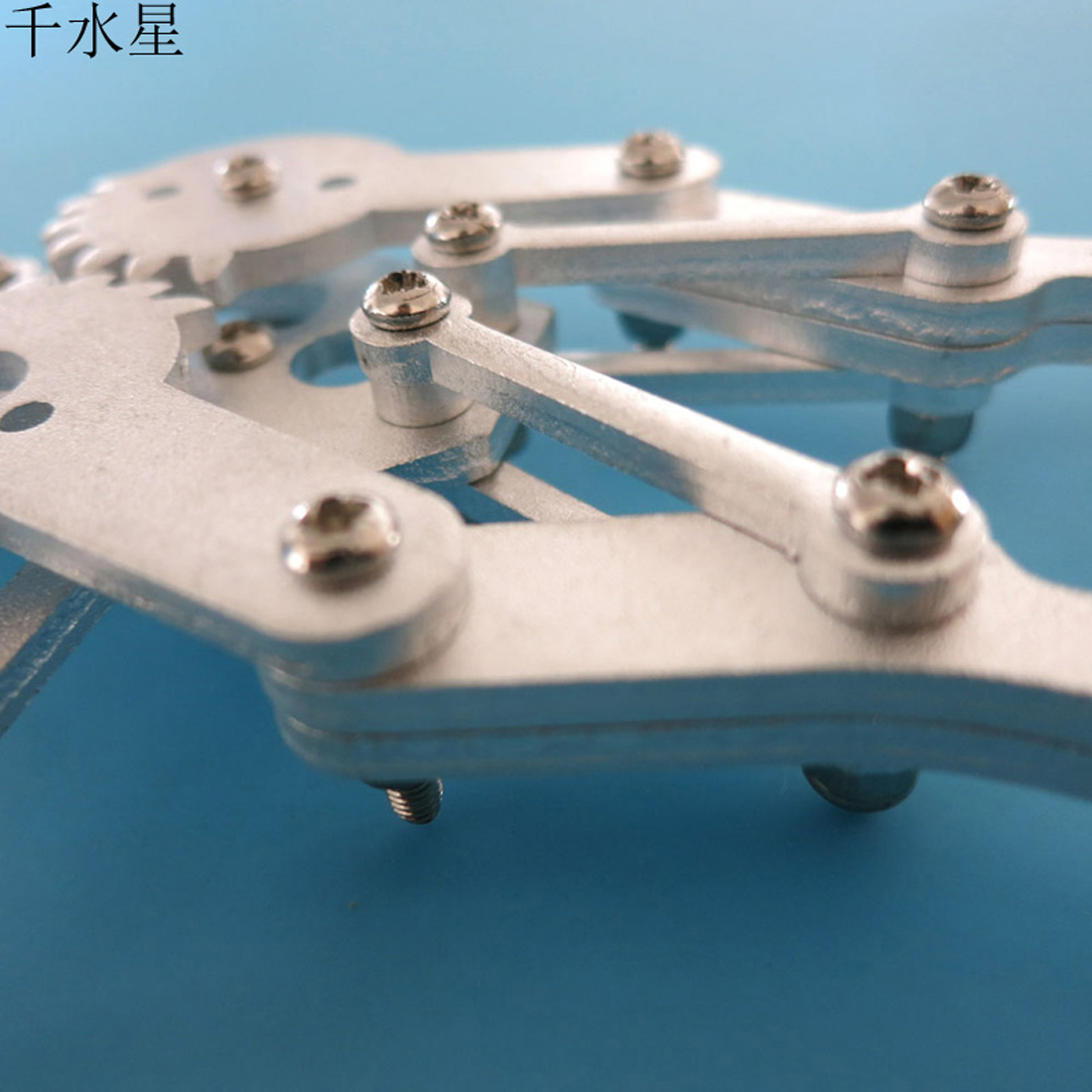 【材质】:铝合金 【重量】:约68g(不含电机) 【张角】:55mm(不加扩展板的时候张角可达间距55mm,安装扩展板之后可达95mm) 【整体长度】:108mm(爪子闭合时的整体长度) 【整体宽度】:98mm(爪子张开时的整体宽度) 【适合舵机型号】:MG995,MG996R