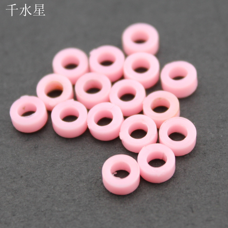 ABS塑料轴套,即图中塑料轴套,用于固定模型轴,对轴在轴架上的位置进行限位,紧配车轴 【产品材质】:abs塑料 【发货数量】:1小包(80只) 【产品尺寸】: (1)内径2mm,外径5mm,厚度2mm,适合2mm轴 (2)内径2.5mm,外径6mm,厚度2mm,适合2.5mm轴 (3)内径3mm,外径5.3mm,厚度2.3mm,适合3mm轴