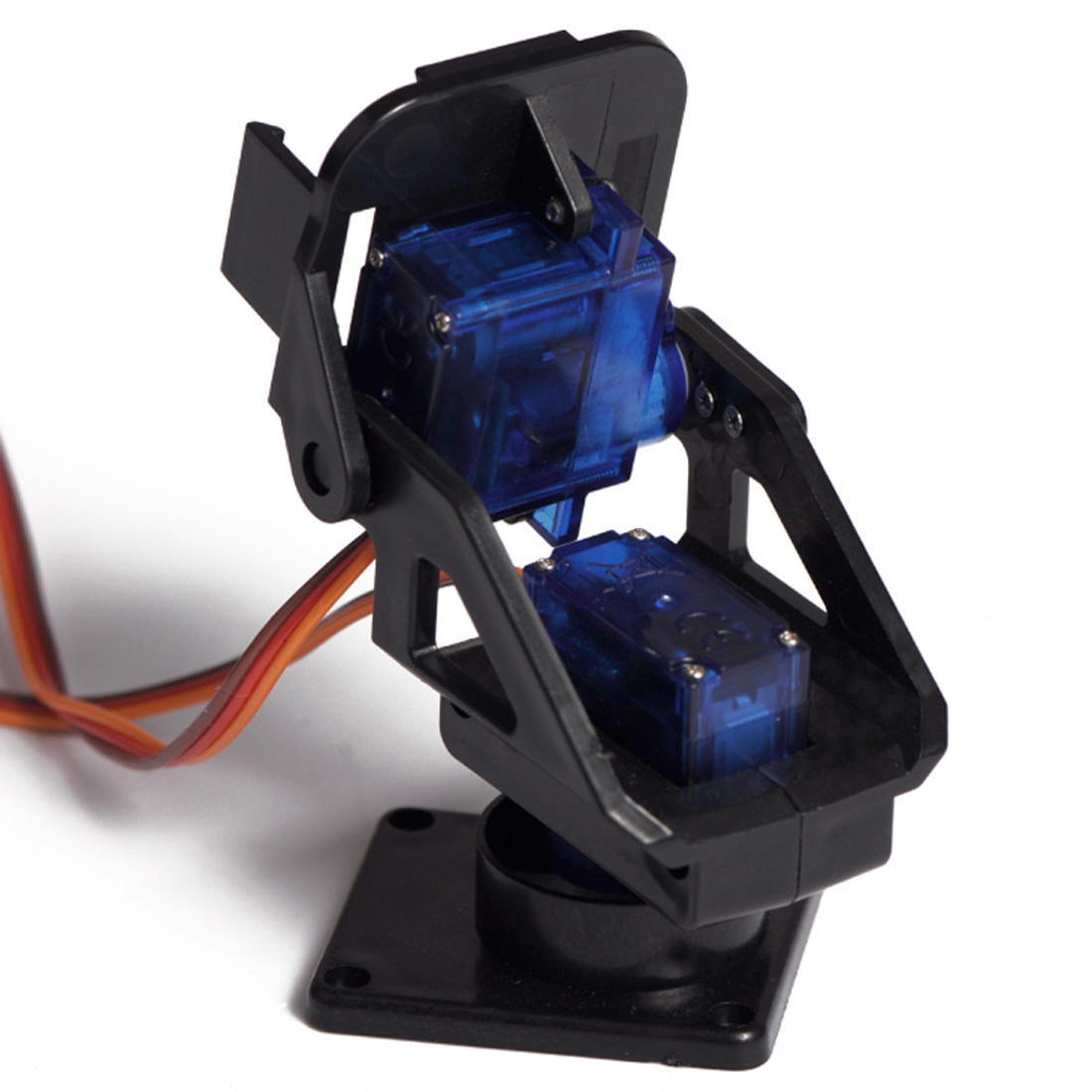 本舵机支架,安装舵机后,可以组成1个两轴的云台,云台顶部可以安装摄像头或者其他模型机构。如果安装摄像头,可以制作可以随机漫游拍照的智能小车。 【包装】此云台是散装的,需要自配舵机和摄像头才能组装起来,有舵机线绕线夹。如果 配SG90S 金属齿轮9克舵机 需要把舵机的摇臂削小一点才能安装的进去。 【适合舵机】适合9g-12g舵机使用 【重量】重20克 【材质】塑料 【提示】本云台只适合于装28*28的摄像头模块,不适合装32或38的摄像头模块